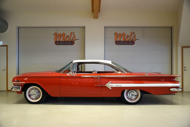 Mel’s Garage specialisten på förmedling av klassiska bilar med konstant stor efterfrågan på varierande modeller i olika prisklasser. Vi kan leverera eller hämta er bil över hela Sverige i heltäckt släp till fördelaktigt pris. Finansiering erbjuds via Wasa Kredit med 20% kontant eller My Money. Denna gång har vi fått in en Chrysler 300 Cabriolet från 1969. En berest bil som köptes på auktion i Canada av nuvarande ägare. Den exporterades till Abu Dhabi där bilen användes som ”daily driver” i ca 6 år. När han sedan flyttade hem till Sverige så togs bilen med hem och har använts soliga sommardagar. V8 440 4v ca 350hk. Torque Flite 3 vxl automatlåda. Original 8 ¾ bakaxel. Trumbromsar fram och bak med servo. Dubbelt avgassystem. Inredning i vit vinyl med omklädda soffor för ett antal år sedan och är fortfarande i ett fint bruksskick. Elstyrd vit vinylcab med glasruta i ett bra bruksskick. Elstyrda fönsterhissar. Bälten fram och bak. Modern stereo. Lackering i bruksskick och kromet runt bilen lika så. En riktig ”full size” glidare som går fint på vägen och med en drivlina utan anmärkning. Cragar fälgar med 225/55-17 däck och ca 7mm mönsterdjup. Besiktigad 2018-06-19 och nu besiktningsbefriad. En funktionell cab bil som inte skäms för sig när den glider fram på vägen, 1933ex tillverkade av denna modell.